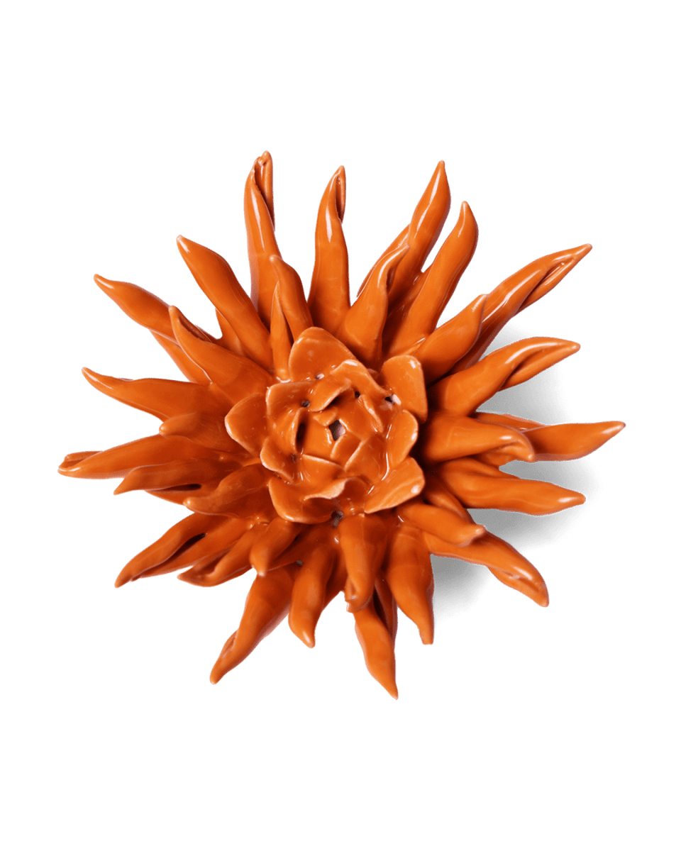 When my sister called to ask what I thought about ceramic wall flowers, I immediately pictured those hideous porcelain bouquets our grandmother used to collect – dusty arrangements that looked like they'd been salvaged from a retirement home garage sale. "It's for above my couch," she explained, as if that somehow made it better. The phrase what to hang above a couch had apparently consumed her entire Pinterest feed for weeks. But then she sent me a photo of this medium-sized orange creation, with petals that looked like they'd been styled by an angry punk rocker. It wasn't the gentle, apologetic wall art you'd find in a dentist's office – this thing had attitude. The spikes reminded me of that time our brother tried to gel his hair for prom and ended up looking like he'd stuck his finger in an electrical socket. "It's decor," she insisted, emphasizing the word like she'd just learned it from an HGTV marathon. "It's different." And surprisingly, she wasn't wrong. The ceramic flower looked less like something our grandmother would've loved and more like something she would've blamed for her heart palpitations. I had to admit, it was sort of perfect, in that wrong-but-right way that makes you question your own taste level.