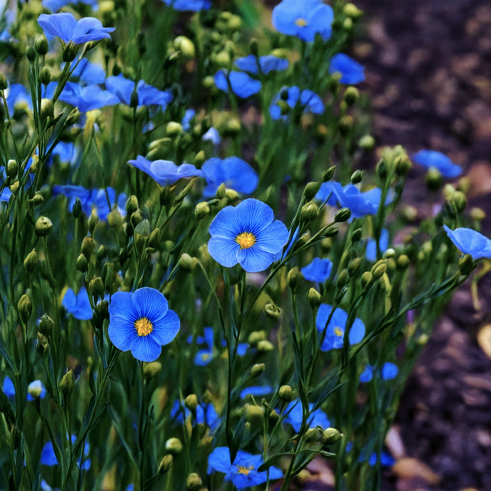 Flax blue flowers (Linum perenne), also known as perennial flax, are delicate and graceful wildflowers that add charm to gardens and landscapes. With their sky-blue petals and slender stems, these plants create a stunning display, especially when grown in clusters. Blue flax is known for its resilience, drought tolerance, and ability to thrive in various climates. Blue flax is easy to grow from seeds, making it an ideal choice for beginner gardeners. It attracts pollinators, stabilizes soil, and provides visual interest throughout the growing season. Flax blue flowers are a hardy, easy-to-grow addition to any garden, offering delicate blue blooms, pollinator benefits, and low-maintenance growth. Whether planted in wildflower meadows, borders, or rock gardens, they bring a touch of natural elegance.