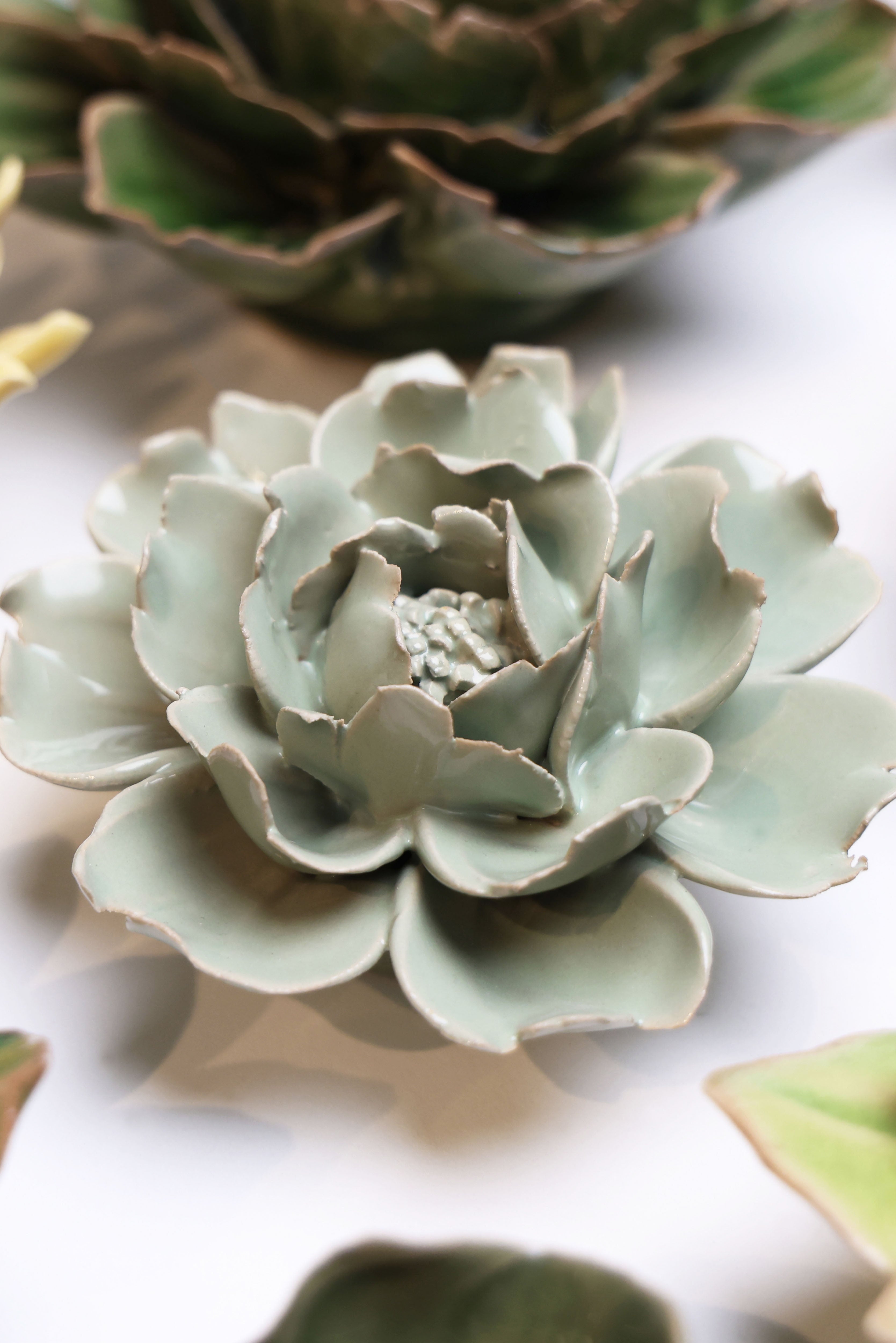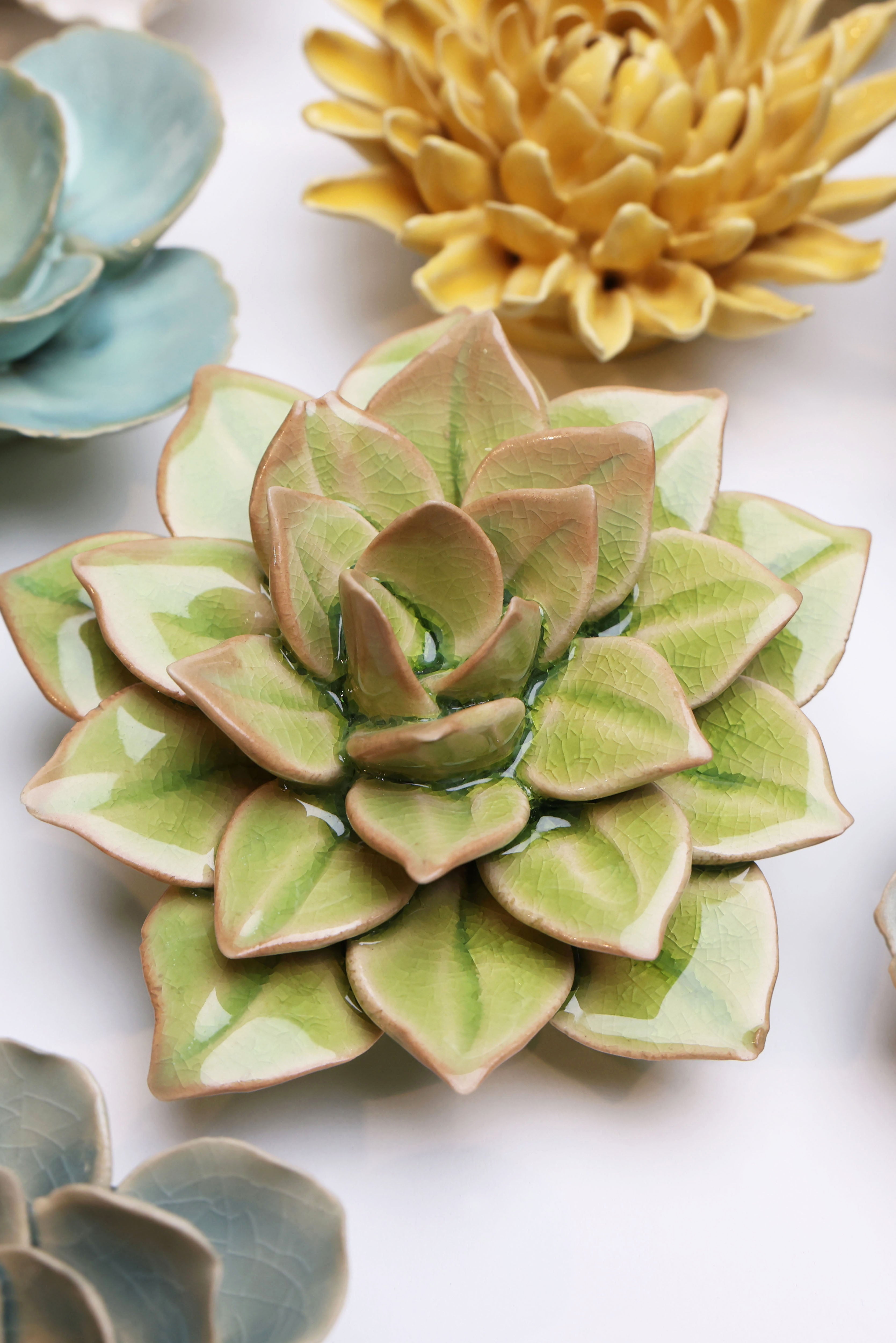 I never thought I'd find myself extolling the virtues of a faux succulent, yet here I was, utterly captivated by a ceramic flower that looked like it had been plucked from the imagination of a whimsical botanist with a penchant for mint ice cream. This medium-sized, light green masterpiece sat in my hand, its abstract petals curling with all the confidence of a plant that would never need watering.