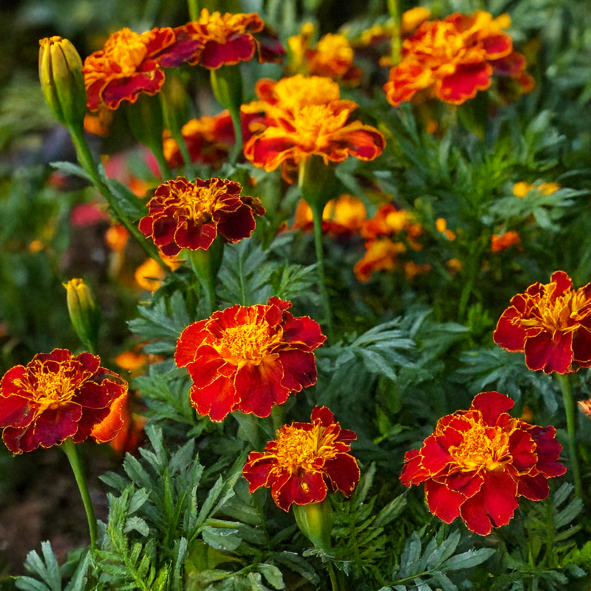 French Marigolds (Tagetes patula) are vibrant, easy-to-grow annual flowers known for their bright blooms and pest-repellent properties. They come in shades of yellow, orange, red, and bi-color varieties, adding cheerful color to flower beds, containers, and vegetable gardens. Beyond their beauty, French Marigolds are valued for their ability to deter pests, making them an excellent companion plant for vegetables and herbs. French Marigolds are low-maintenance, vibrant flowers that enhance gardens with their cheerful blooms and pest-repellent properties. Their ability to deter pests, attract pollinators, and improve soil health makes them an excellent choice for flower beds, vegetable gardens, and containers.